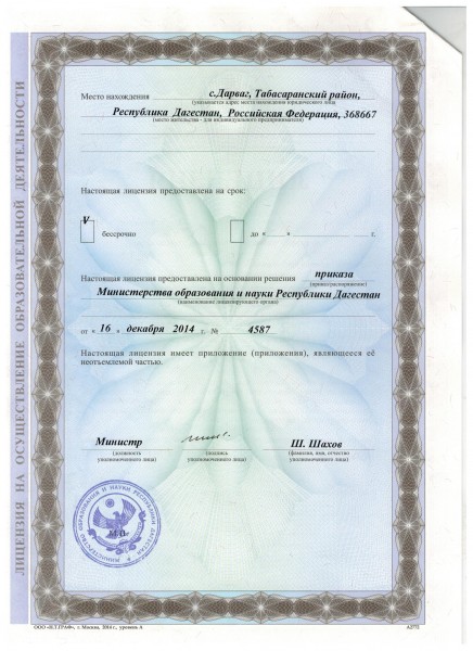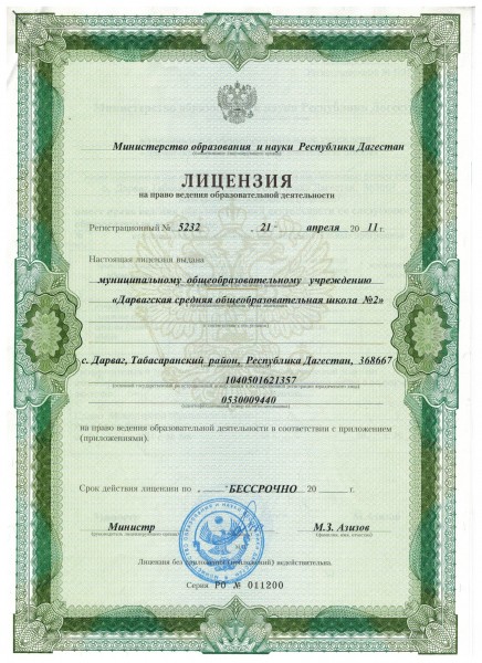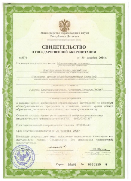 Свидетельство о государственной аккредитации